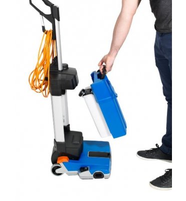 Maszyna jest niewielka, przez co może pracować pod meblami i w innych ciasnych miejscach, do których typowe automaty szorujące nie mają dostępu.