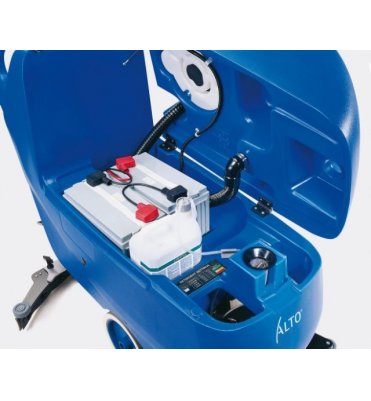Szczotki napędzane są mocnymi silnikami. Maszyna przemieszcza się na szarych nie zostawiających śladów kołach. Na głowicy szczotek zainstalowano kółka odbojowe zabezpieczające moduł przed uszkodzeniem.